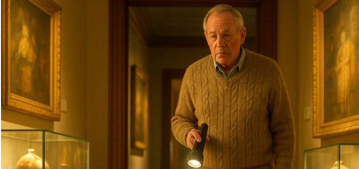 Om natten sov det gamle bymuseet som en mann som hadde levd et helt århundre. Korridorene var dypt nedsenket i mørke, hvor hvert skritt ga gjenklang. Gamle malerier