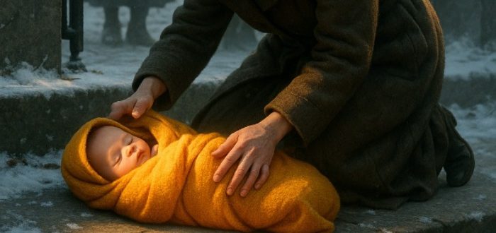 En kald morgen omsluttet barnehjemmet med grå tåke. Læreren på vakt gikk ut i hagen for å sjekke porten og la plutselig merke til en liten pakke ved