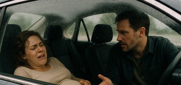 Veien var tom, regnet dryppet på frontruten, og smertene ble sterkere. Sofia satt i passasjersetet, klemte seg om magen og prøvde å ikke skrike. «Hold ut, bare litt
