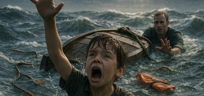 Det var en solrik, varm dag. En familie tilbrakte helgen ved en liten innsjø nær kysten – faren reparerte båtens motor, moren dekket bord, og deres åtte år