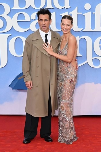 Sammen med henne på den røde løperen var Colin Farrell, stilig kledd i svarte bukser, en beige trenchcoat og en frisk hvit skjorte. Duoens tilstedeværelse tilførte arrangementet eleganse og stjerneglans.