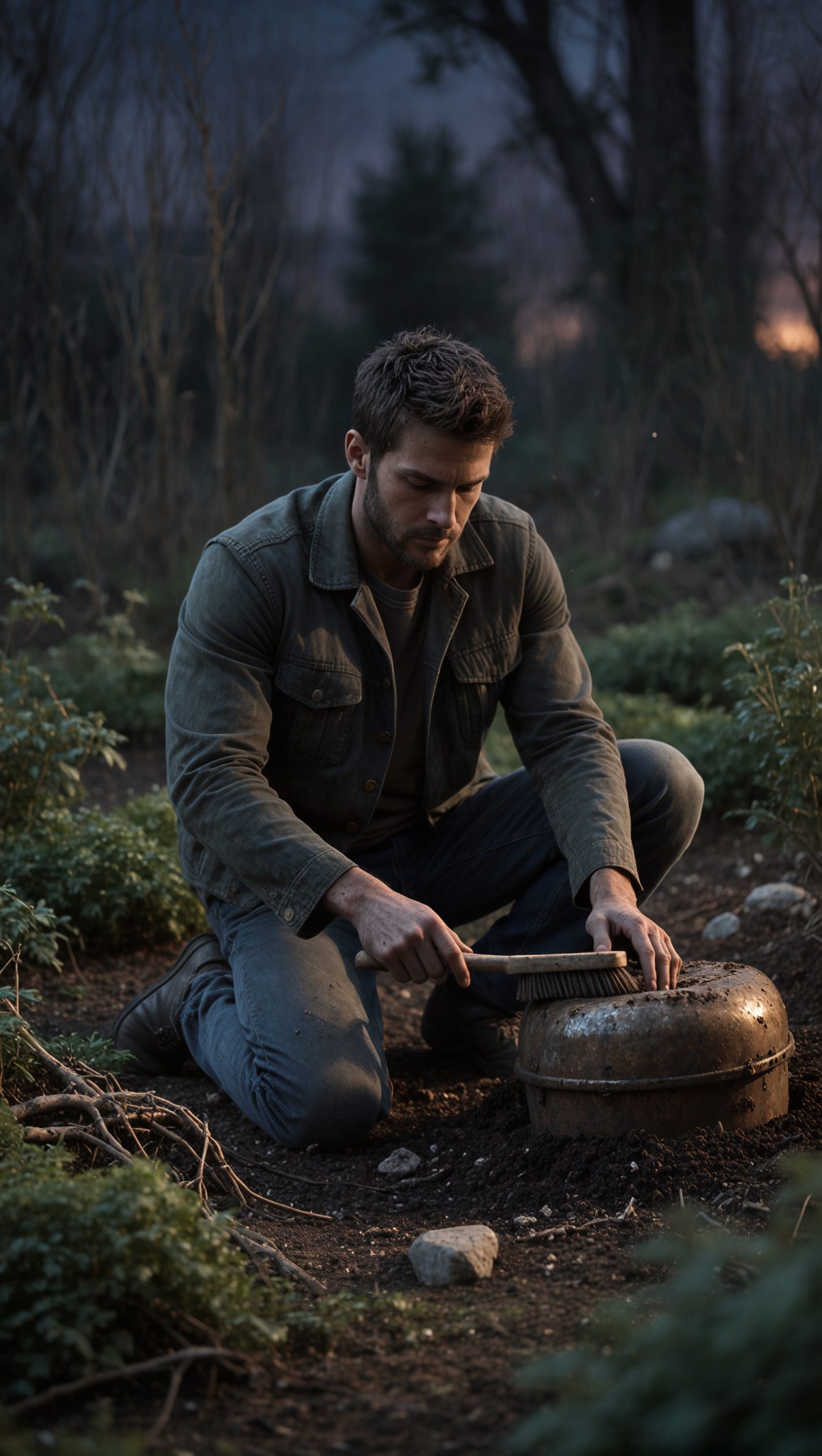 Han børstet bort jorden og avdekket et anløpet lommeur. Sølvhuset var riper, glasset sprukket og viserne sto fast på klokka 3:17.