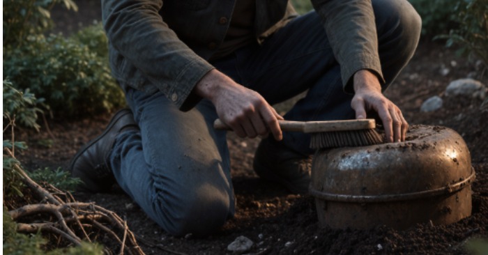 Da Mark kjøpte hytta, var hagen i forferdelig stand – full av ugress, sammenfiltrede røtter og bare flekker med jord. En lørdag, mens han gravde nær bakre gjerdet, traff spaden hans noe hardt.