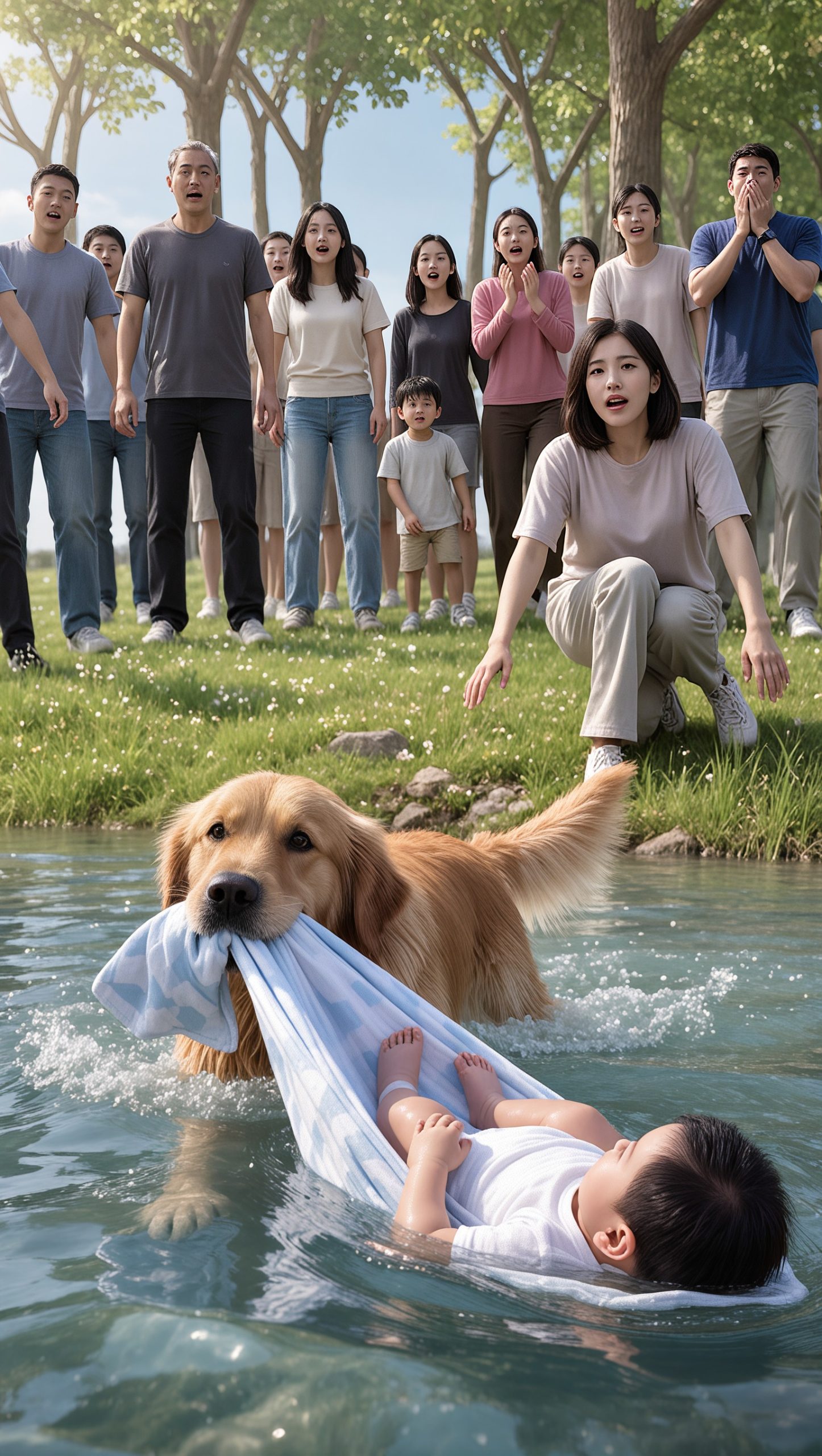 Folk gispet, noen løp mot dammen, men ingen nådde ham raskt nok. Da, ut av det blå, skjøt en skygge forbi folkemengden. Ikke en person – men en hund. En raggete retriever som hadde ligget og slappet av ved et piknikteppe bare noen øyeblikk tidligere. Uten å nøle hoppet den i vannet og padlet raskt mot det synkende barnet.