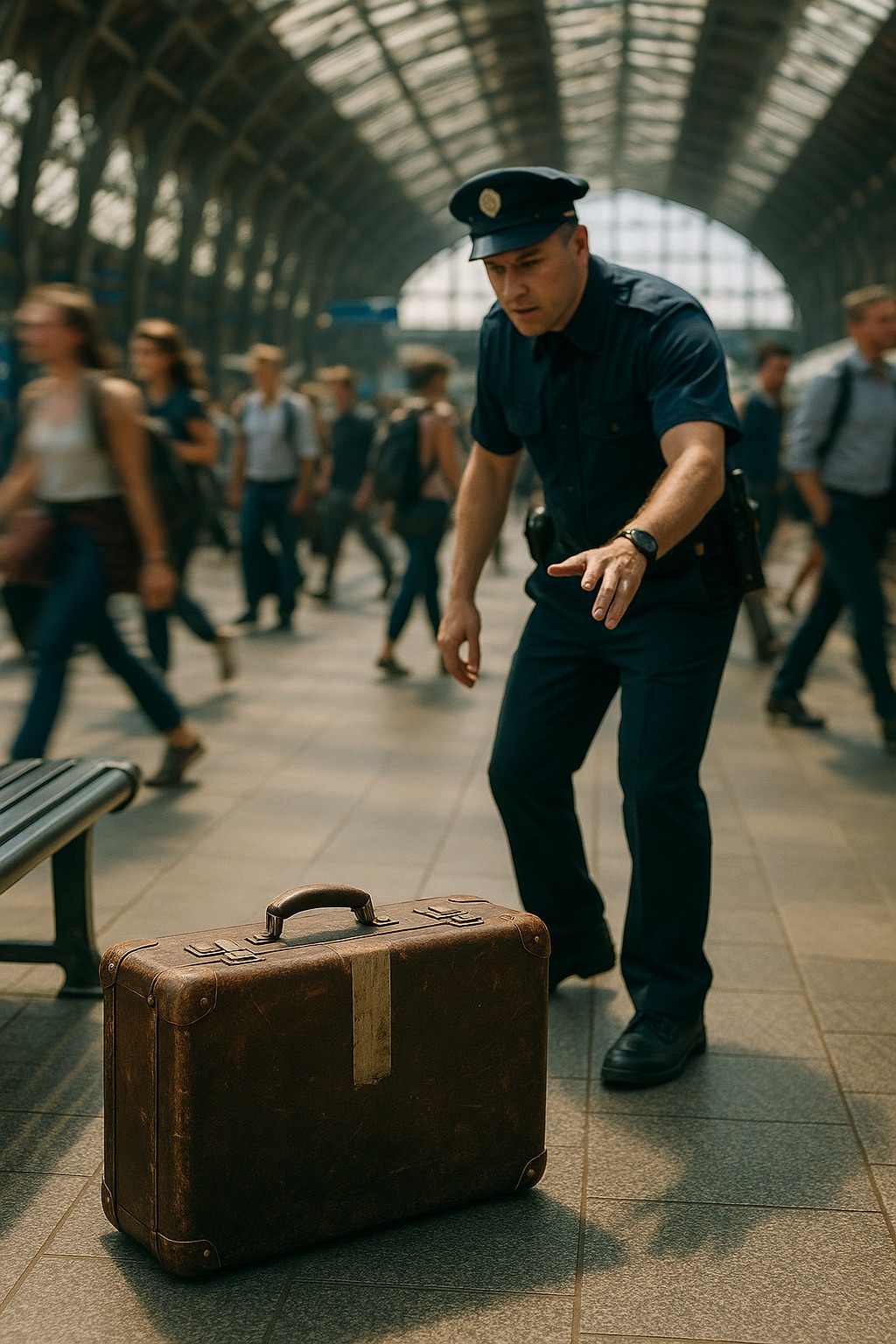 Nær plattform 7 sto en koffert. Gammel, slitt, med teip på håndtaket. I tre timer kom og gikk passasjerer, men ingen nærmet seg den.