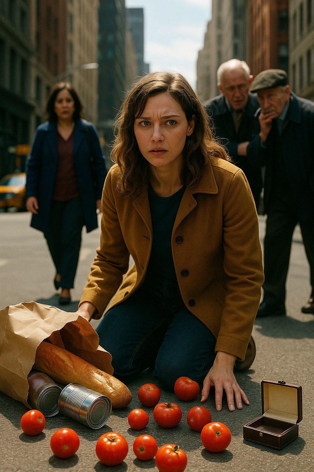 Det var en uvanlig varm dag. Maya flyttet vekten av dagligvarene mens hun gikk ned Main Street, med vondt i armene. Hun var halvveis over torget da bunnen av posen ga etter. Tomater rullet over fortauet. Et brød landet i rennesteinen. Men det var ikke maten som fikk folk til å stoppe opp og stirre.