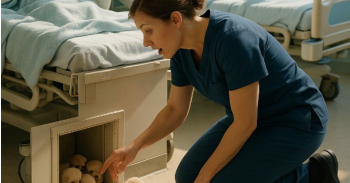 Det var like etter midnatt da sykepleier Emily begynte sin runde på barneavdelingen. Lysrørene kastet et blekt skinn over de sovende barna, og den svake summingen fra monitorene fylte den ellers stille korridoren. Da hørte hun det: en svak skrapelyd bak veggene.