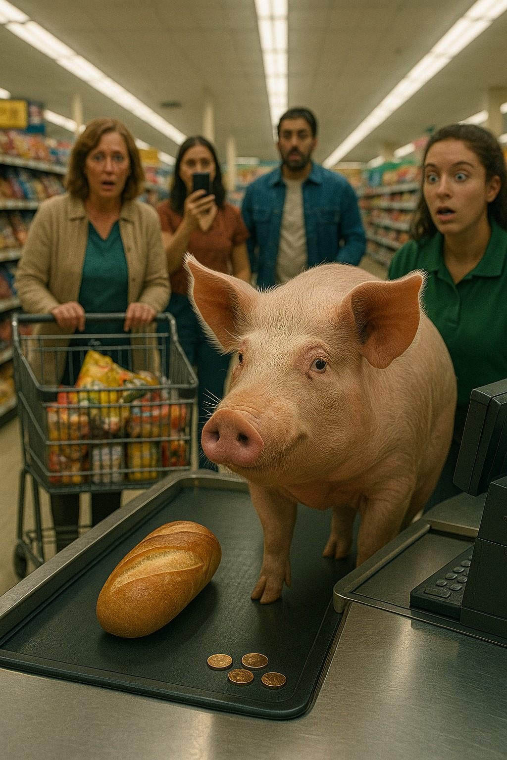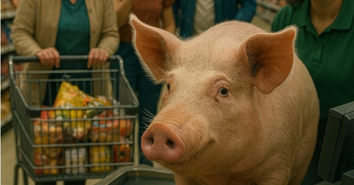 Først lo folk. «Er dette en slags spøk?» spurte en mann. Men latteren ble til forbløffet stillhet da grisen ikke vandret målløst rundt som et rømt husdyr. I stedet gikk den rett til gang tre, plukket opp et brød fra en lav hylle med snuten og trakk til kassen.