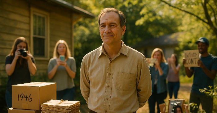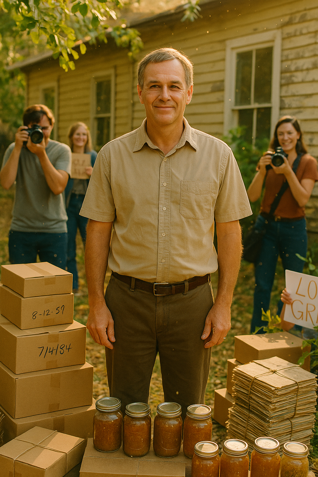 Han sto utenfor huset sitt, kledd i en falmet skjorte, og bandt forsiktig sammen en bunke gamle aviser. Det virket som om han forberedte dem ikke til søppelkassen, men til et museum.