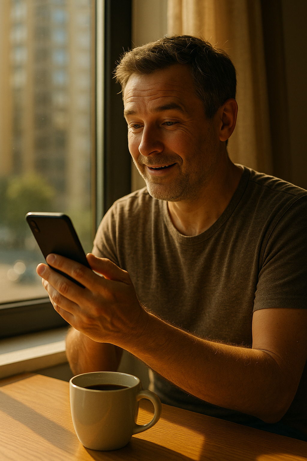 Byen var spesielt stille den morgenen. Luften var klar og kjølig, og solen reflekterte seg i vinduene til bankene, som om håp levde i hvert eneste vindu. Han våknet sent, satte på vannkokeren og helte kaffe i sin favorittkopp med en sprekk i – den samme koppen som hadde vært med ham gjennom alt.