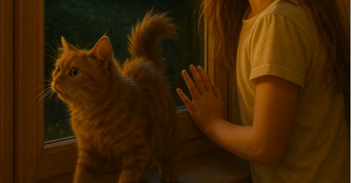 Mira, katten, sov sammenkrøllet i kjøkkenvinduskarmen. Hun hadde kommet om våren – tynn, med et oppskrapt øre, men med ravfargede øyne. Emma, den yngste datteren, hadde sagt da: «Hun vil bringe oss lykke.» Og fra da av ble Mira virkelig en del av huset – stille, stolt, observant.