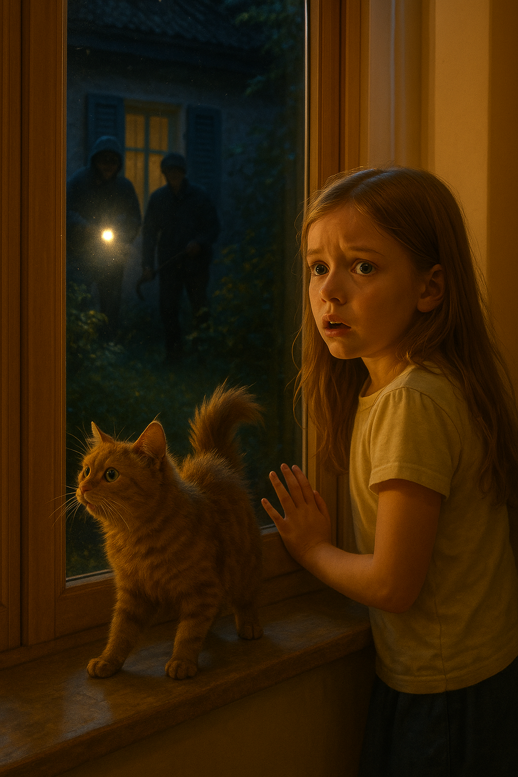 Et minutt senere knirket døren ved bakinngangen. Katten satt og voktet kjøkkendøren, bøyde ryggen og knurret. Da døren åpnet seg, kastet Mira seg rett mot skyggen, hveste, klorte og skrek vilt. Innbruddstyven rygget tilbake, snublet i et trinn og mistet brekkjernet.