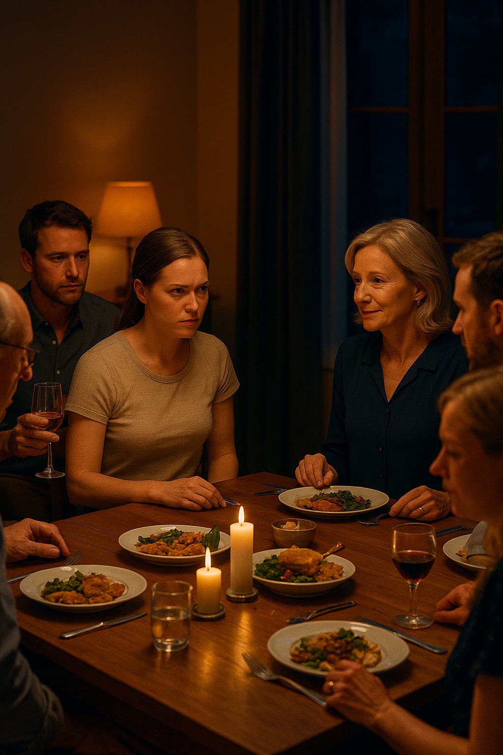 En stor familie, stearinlys, vin, latter.