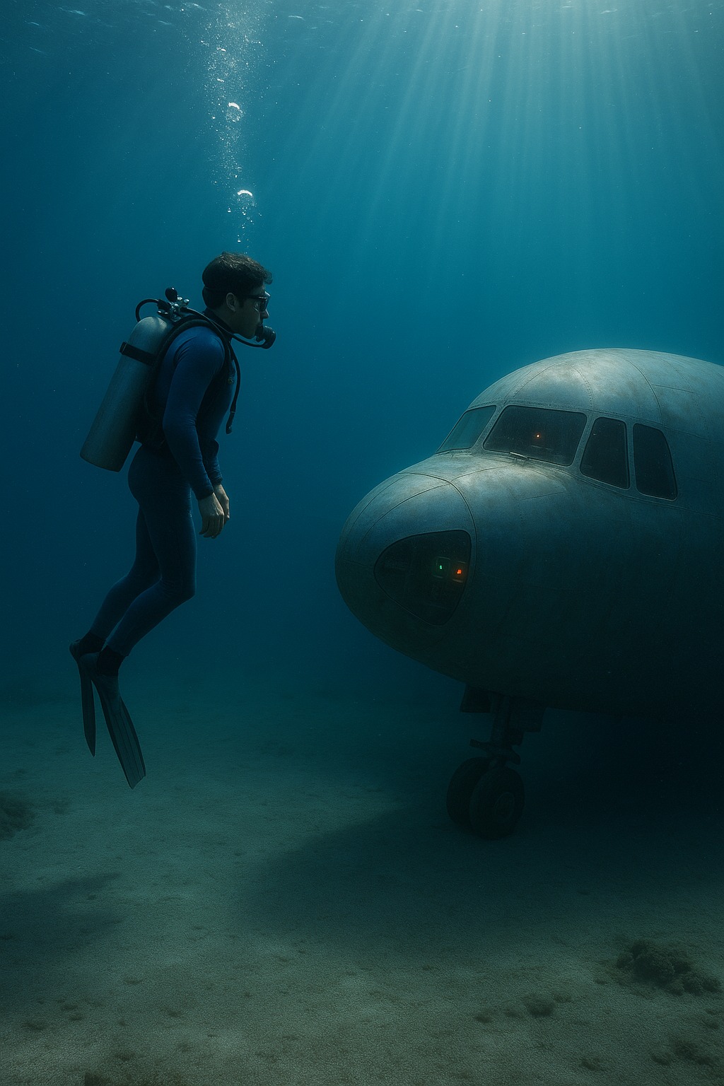 Dykket begynte rolig. Vannet var klart, solen brøt gjennom overflaten og brøt seg opp i sølvaktige striper. Lucas lette etter stedet for et gammelt skipsvrak som noen fiskere hadde fortalt ham om.