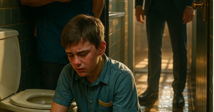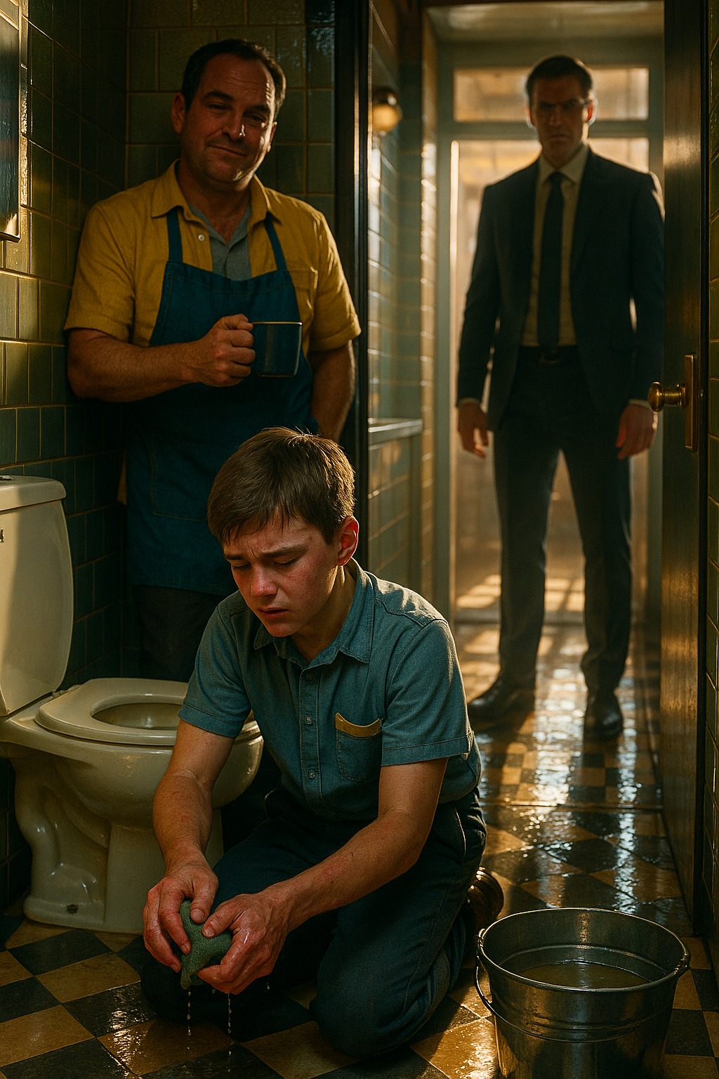 En solflekk flimret gjennom den åpne toalettdøren. Kunder kom og gikk, uvitende om den unge mannen som skrubbet gulvene bak dem. Helt til en dag døren åpnet seg igjen – og skyggen som kastet seg på flisene frøs til.
