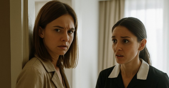 Hushjelpen snudde seg brått, ansiktet hennes blekt.