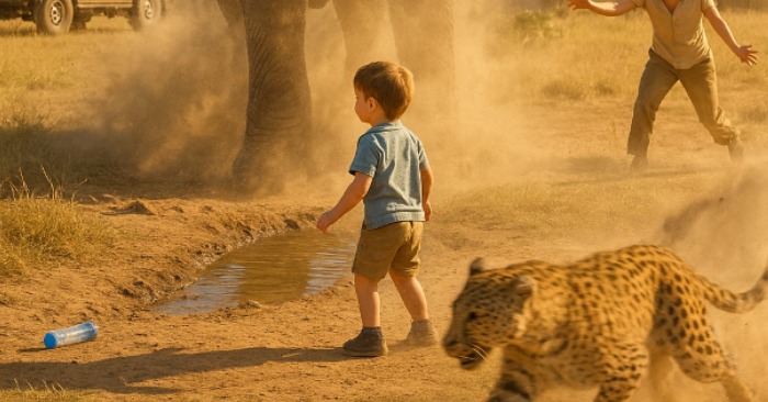 En enorm flokk beveget seg mot vannet. I midten sto en elefantmor med kalven sin. Hun gikk rolig, med myke skritt, men hver av dem bar en sterk kraft.
