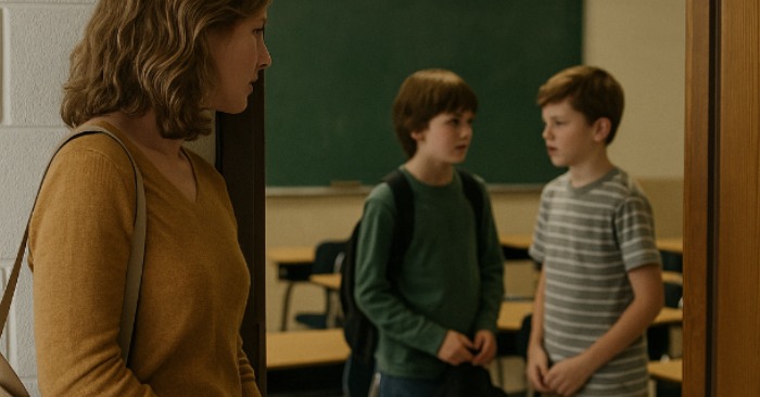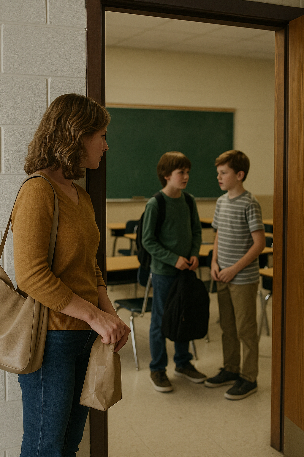 Emily gikk inn på skolen, gikk ned den lange gangen som luktet av maling og kritt, og gikk mot sønnens kontor. Hun hørte stemmer i døren. Den ene var Jake. Den andre – en annen gutt, litt høyere, hånlig.
