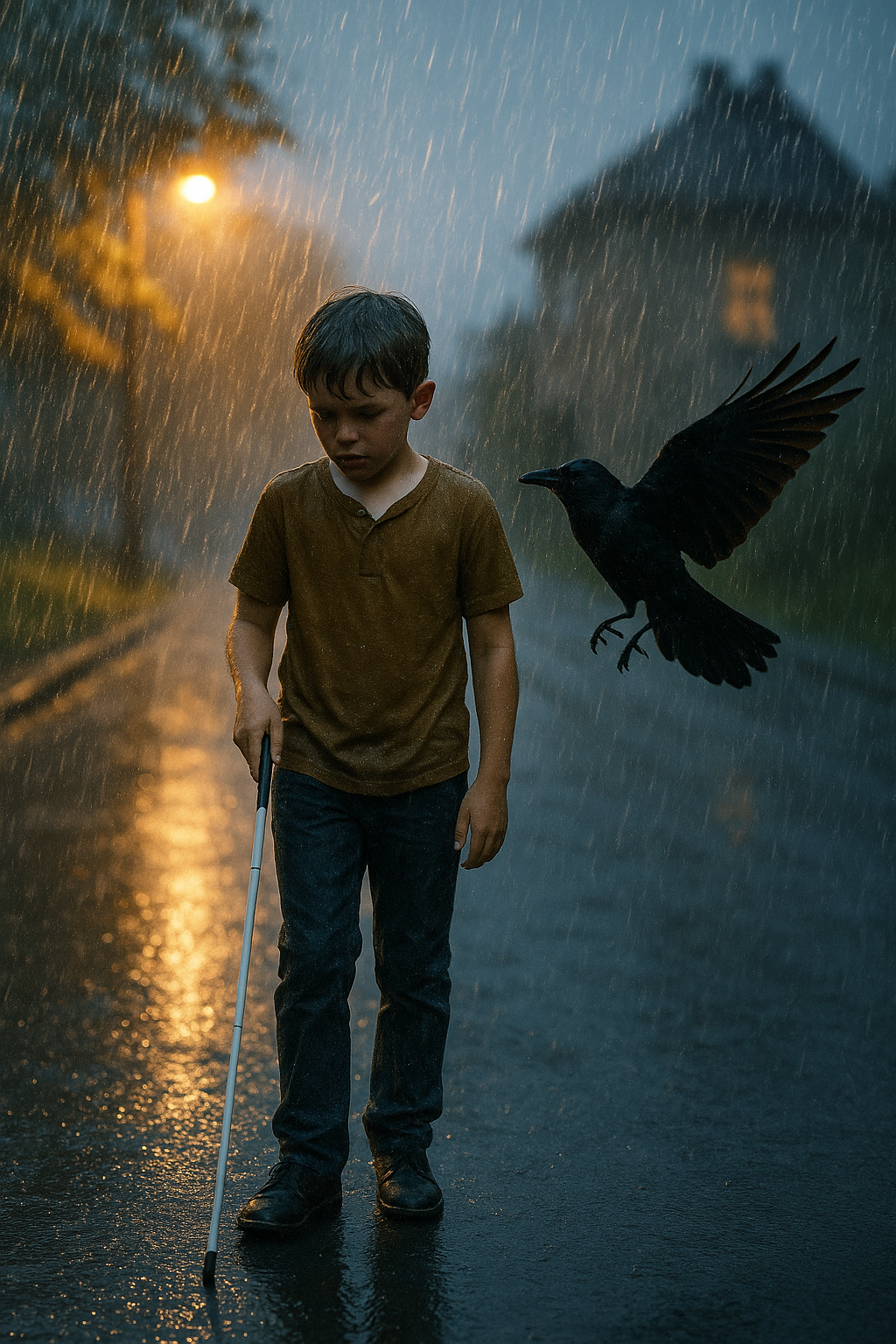 Gutten løftet hodet. Han beveget seg forsiktig fremover, stokken hans gled gjennom pyttene.
