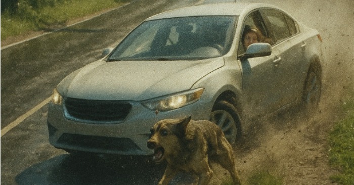 Den første bilen bremser brått, den andre svinger til siden. Folk roper, tuter, noen tar allerede frem telefonen, i den tro at dyret har blitt gal. Men hunden går ikke vekk. Den bjeffer, løper mellom kjørefeltene og lar ingen biler komme nærmere.
