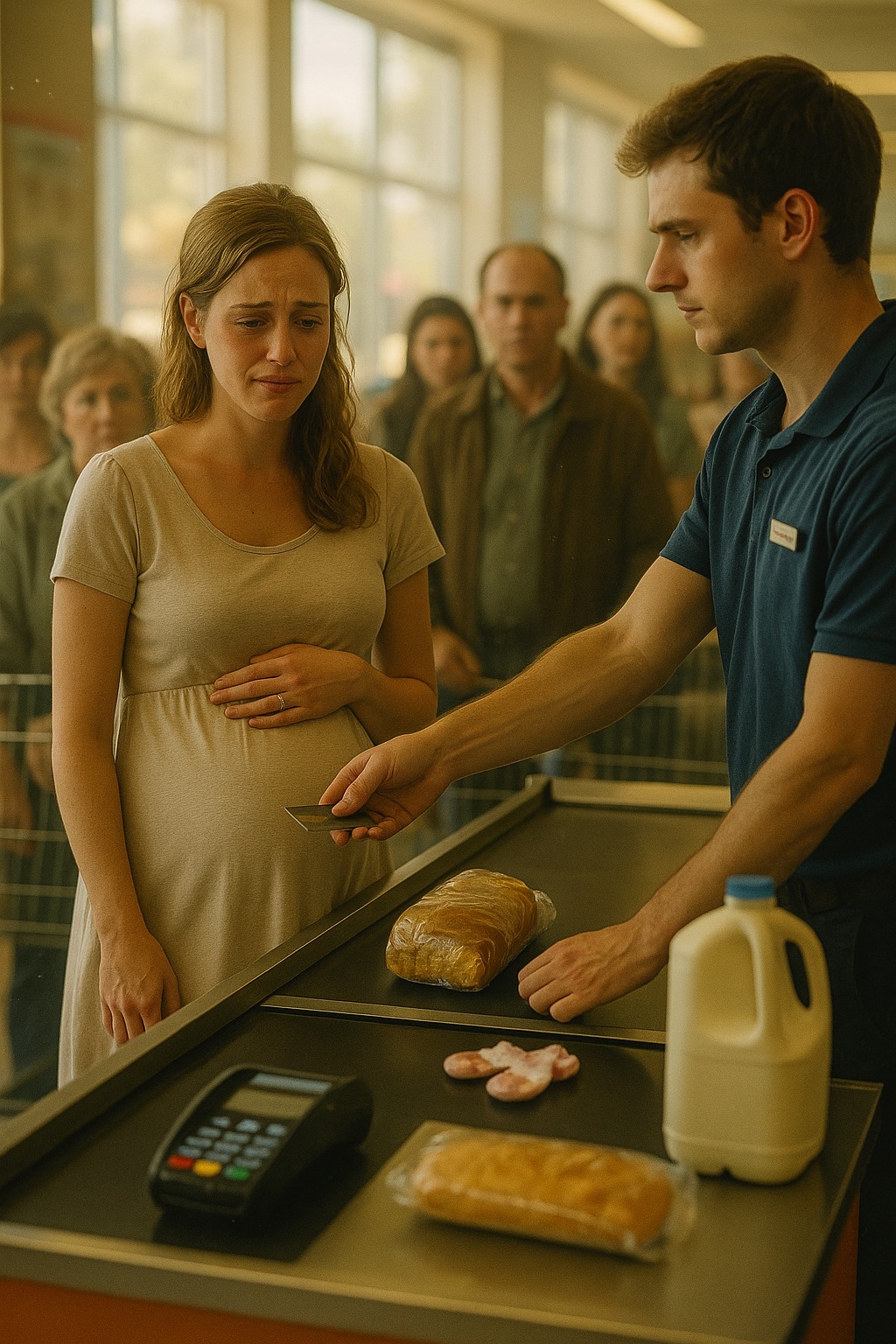 Hun var den siste i køen. Ung, gravid, med en rund mage og et trøtt ansikt.