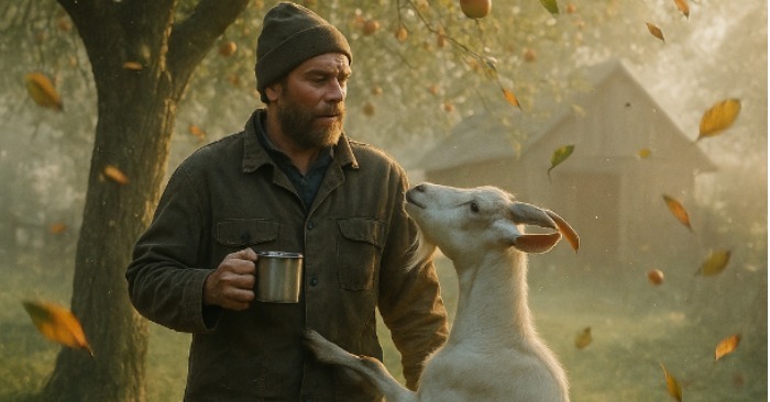 Geita kom ut av fjøset, ristet på hodet, og bjellen klinget.