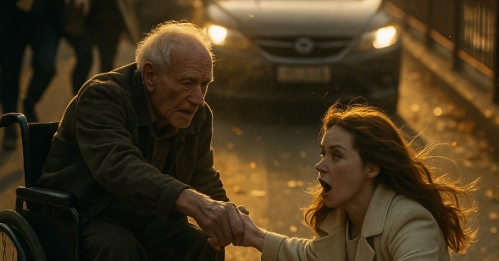 Han satt på kanten av fortauet – en gråhåret mann i en gammel rullestol, ubevegelig, som en del av landskapet. På knærne hadde han en bok uten bokmerke, som han ikke lenger åpnet.