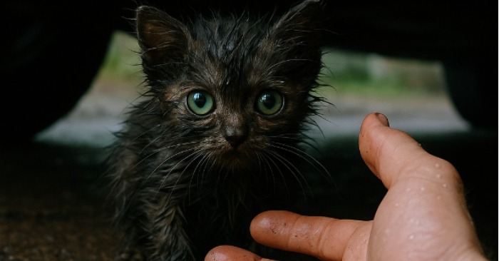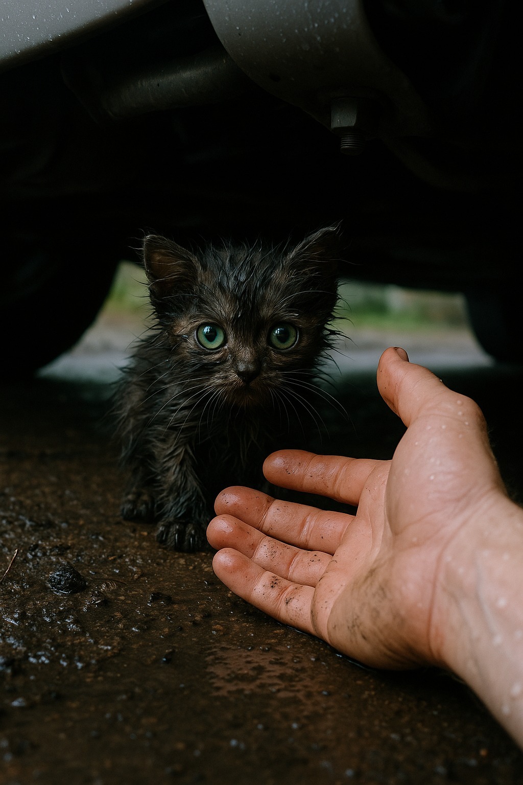 «Kan jeg ta ham med hjem?» og et bilde. En liten kattunge, dekket av skitt, med våte poter og store, runde øyne, så rett inn i kameraet.