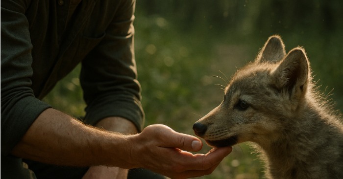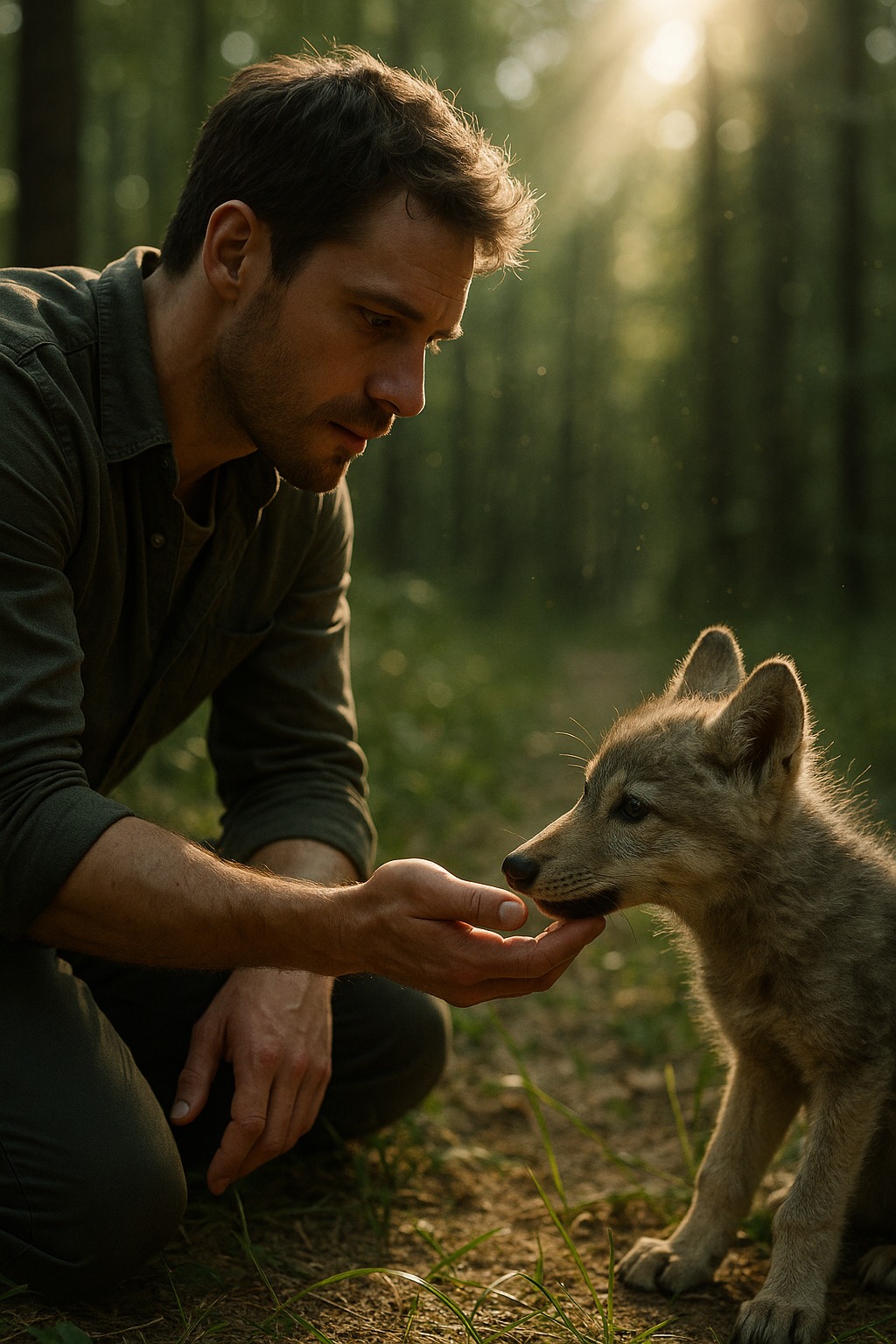 Ulveungen skvet, men løp ikke bort. De så på hverandre – en mann og et vilt dyr, bare adskilt av pusten deres.