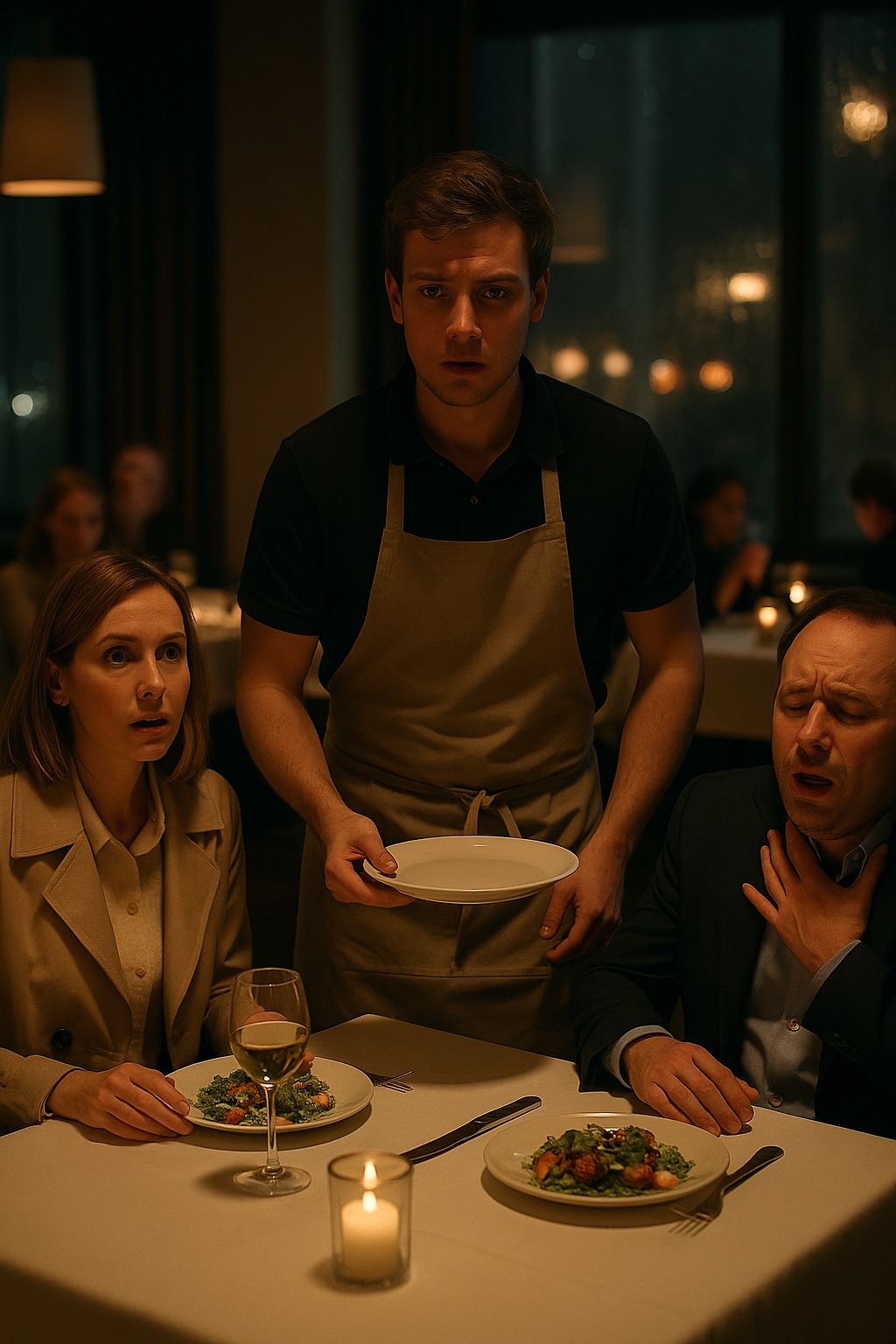 Restauranten var nesten tom. Det var sent på kvelden, med myk jazzmusikk, dempet belysning og lyden av regndråper utenfor vinduet. En servitør ved navn Alex ryddet bordene da en kvinne i førtiårene kom bort til ham – streng, velstelt, kledd i en beige kåpe. Hun satte seg ved et bord ved vinduet og bestilte en tunfisksalat og et glass hvitvin.
