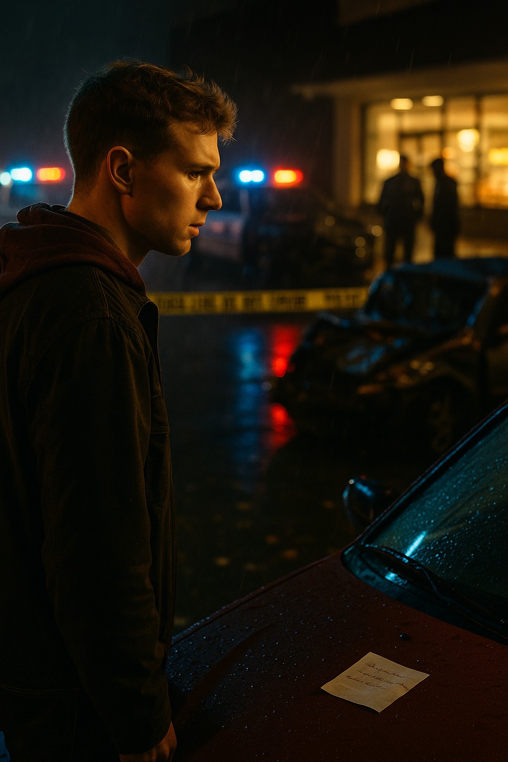 Han gikk nærmere. En politimann vinket ham til å stoppe: «Nei, gutt.» Artem nikket, men blikket hans falt på noe skinnende på den våte asfalten. En vindusvisker, bøyd, og et hvitt papir ved siden av. Han kjente igjen håndskriften sin.