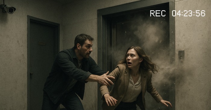 En mann kom ut av heisen – høy, iført frakk, med en veske over skulderen. Han smilte mekanisk og holdt høflig døren åpen: