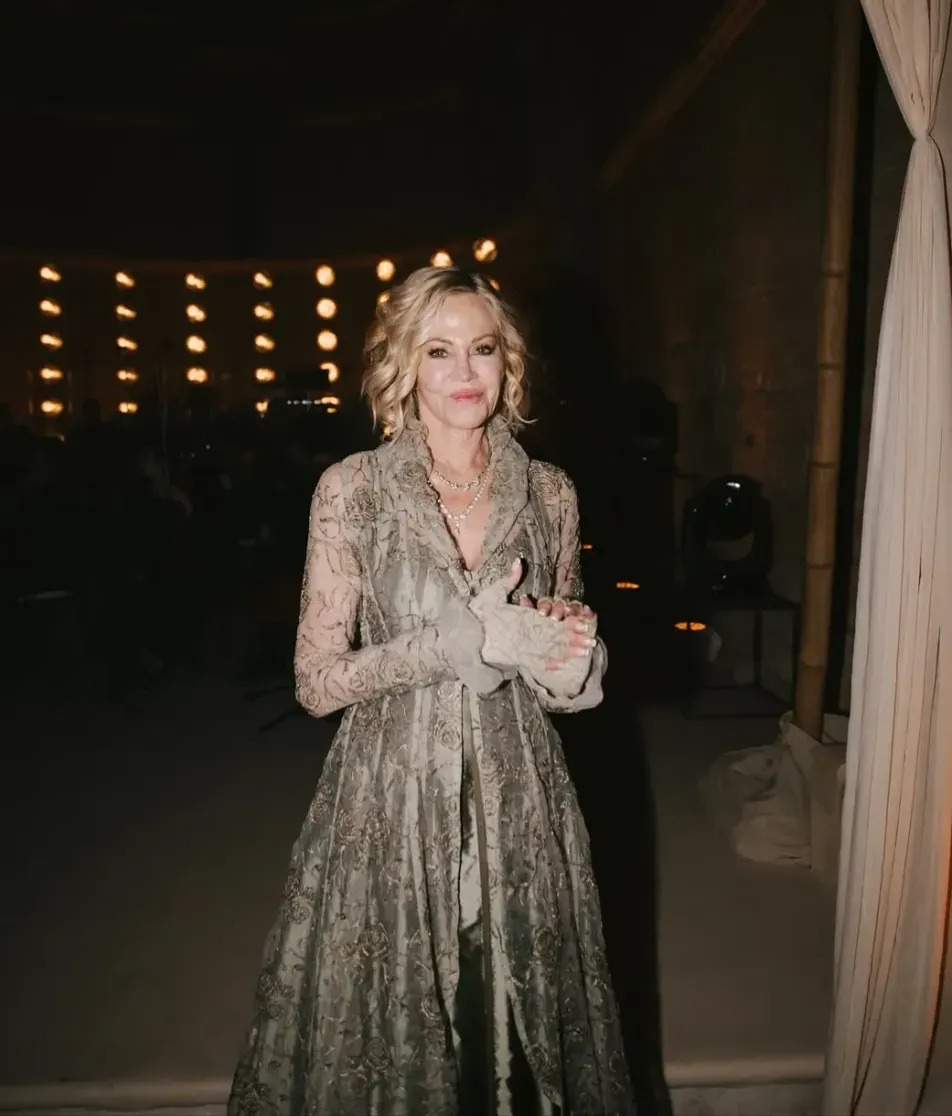 Etter at de hadde utvekslet løfter, flyttet feiringen til eiendommens kapell, hvor Stella dukket opp i et annet antrekk – en lys silkekjole av Jane Booke. Melanie Griffith delte senere bilder på sosiale medier og kalte bryllupet «en av de snilleste og mest rørende begivenhetene i familien deres».