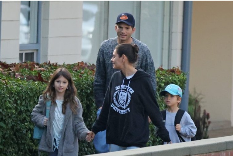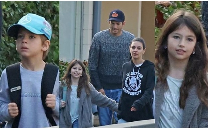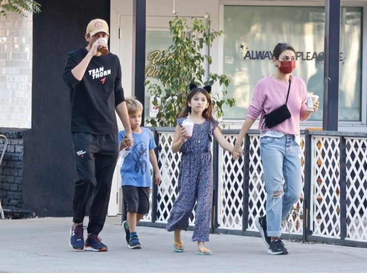 Bildene viser foreldrene som holder barna sine i hånden: Mila holder sin voksne datter, og Ashton holder sin sønn. Bildet ble uventet varmt og livlig, da paret nøye beskytter barna sine mot journalister.