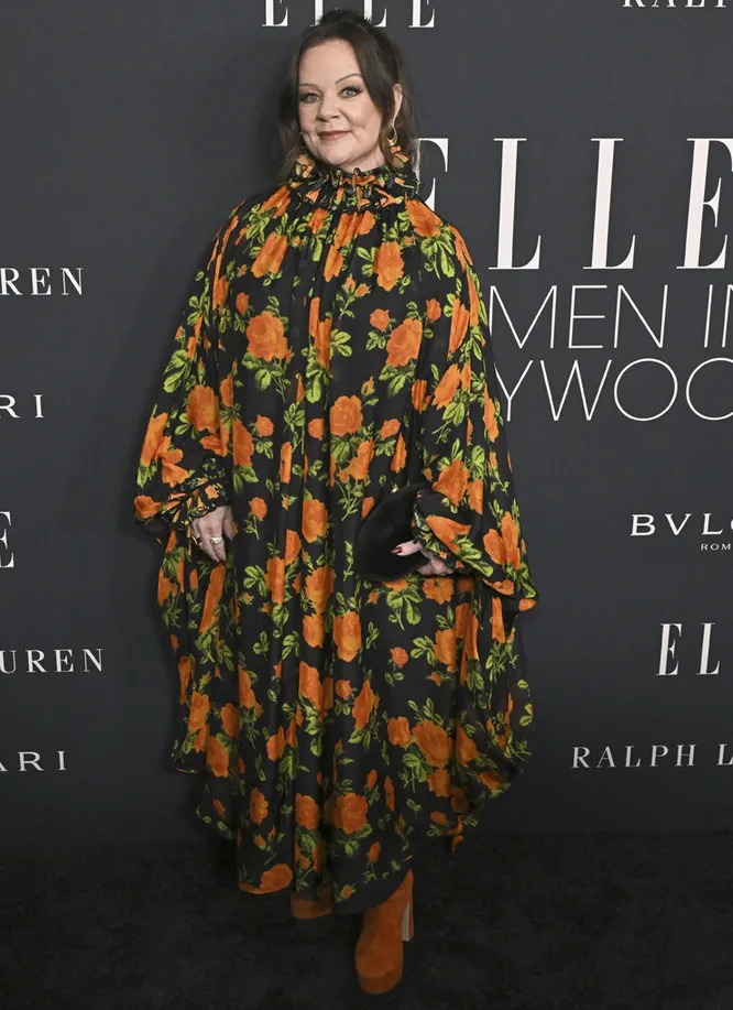 Elle Women In Hollywood 2025-arrangementet i Beverly Hills samlet mange kjendiser, og McCarthy var en av de mest omtalte gjestene. Hun valgte en svart kjole med stort blomstertrykk og knalloransje ankelstøvler.