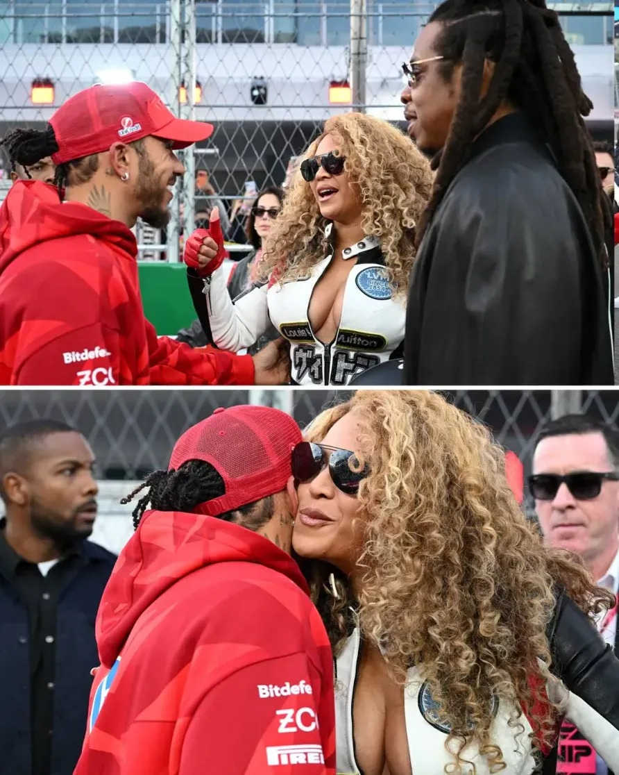 Beyoncé var en av de mest bemerkelsesverdige gjestene på arrangementet, ikke minst fordi hun kjørte i en rød Ferrari med sjåføren Lewis Hamilton.
