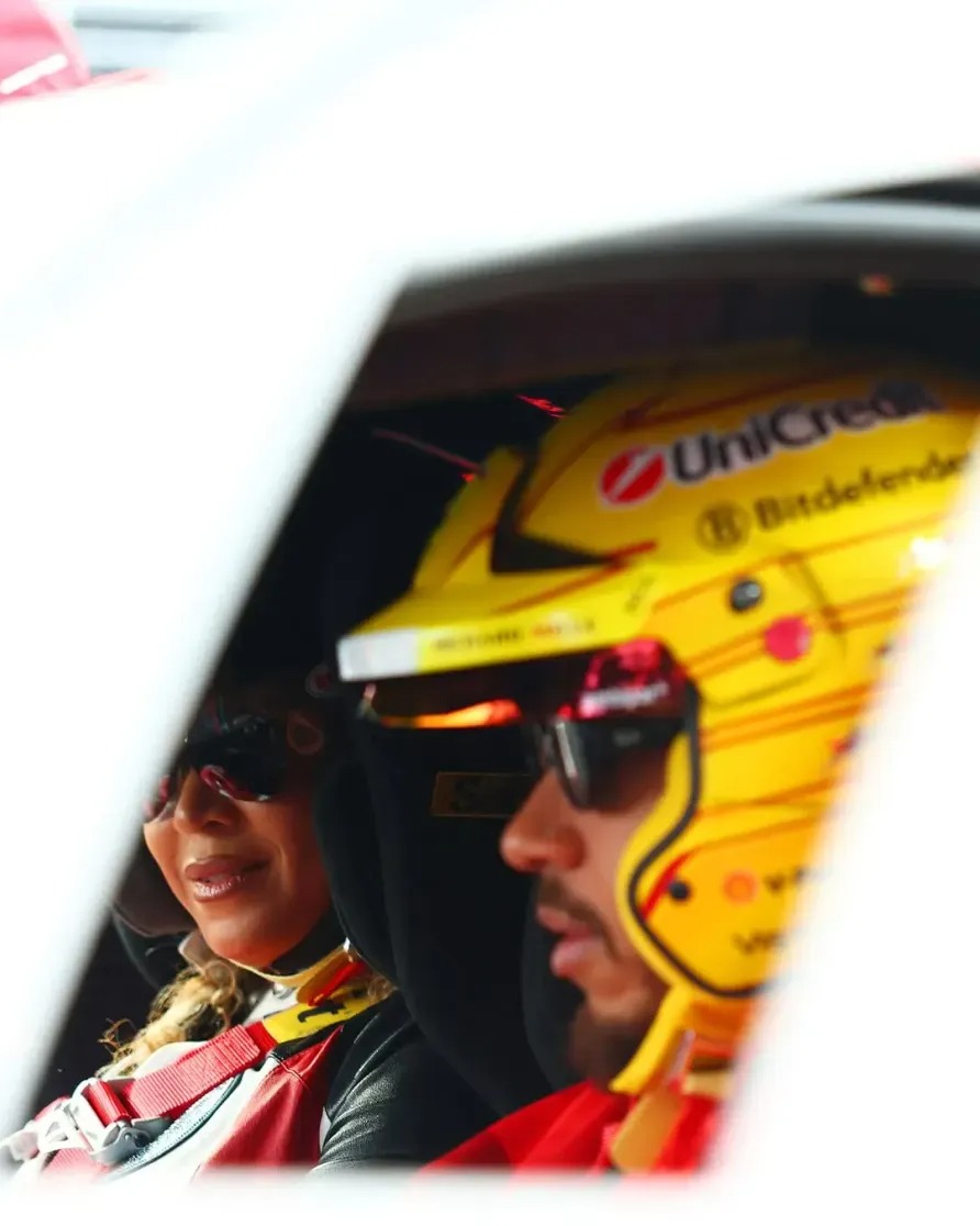 Beyoncé var en av de mest bemerkelsesverdige gjestene på arrangementet, ikke minst fordi hun kjørte i en rød Ferrari med sjåføren Lewis Hamilton.