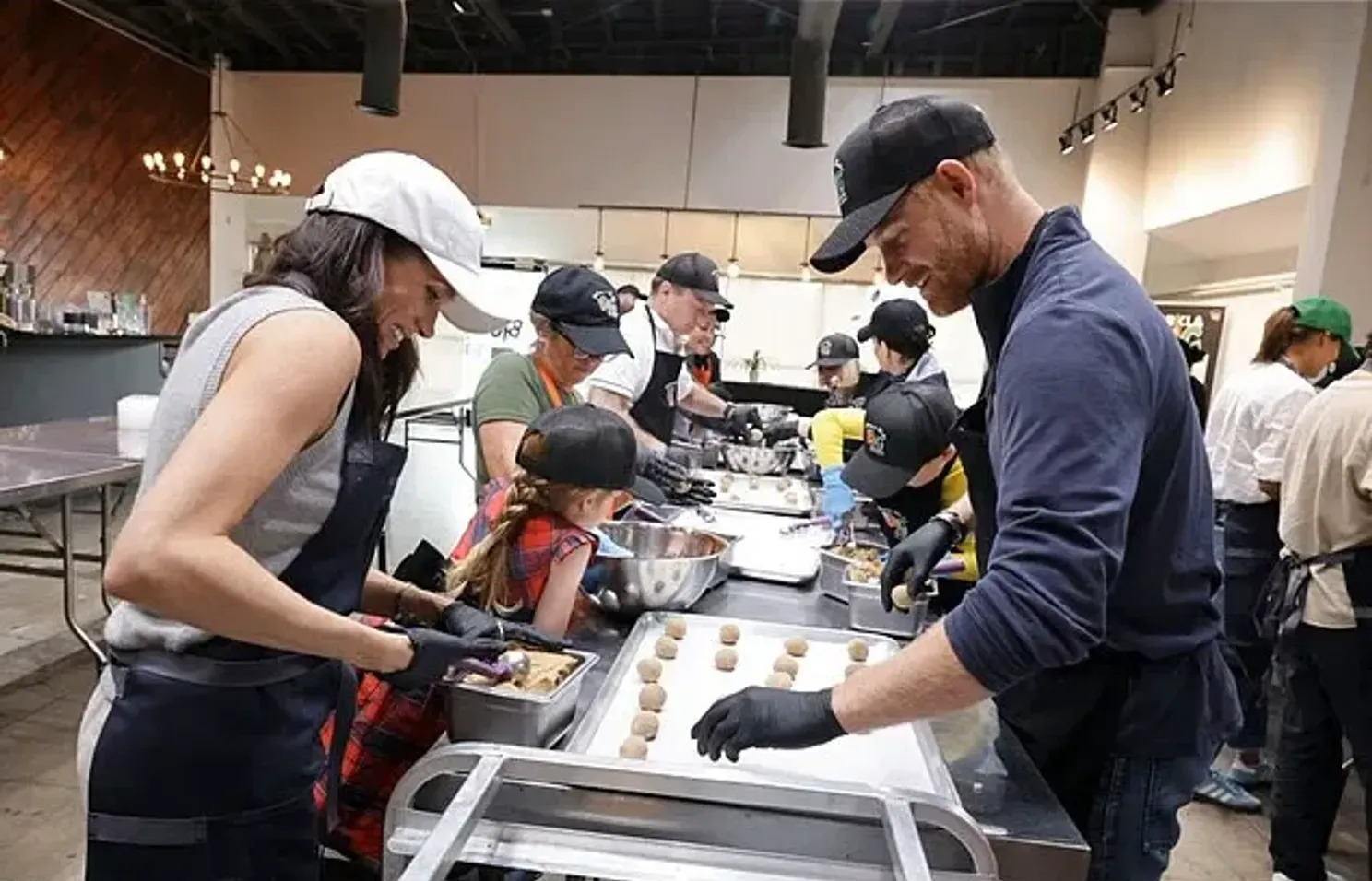 I sine historier la Meghan ut bilder av seg selv og Harry som pakket mat i beholdere og hjalp til med å bake kaker sammen med frivillige. Parets barn, seks år gamle Archie og fire år gamle Lilibet, kan også sees på bildene, iført matchende forklær og caps med organisasjonens logo. Tilsynelatende var også de små med på leken.