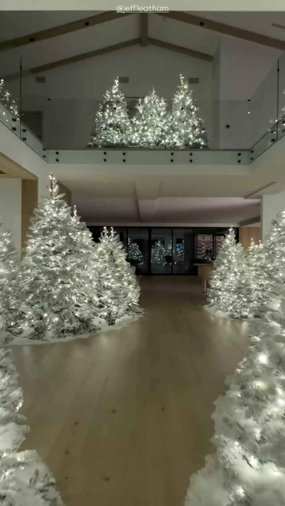 Kim delte en video som viste hjemmet hennes pyntet til høytiden. Dusinvis av lysende trær med imitert snø sto i herskapshusets gang. Hun kunngjorde gladelig at forberedelsene var fullført. Stjernen beskrev duften og følelsen av dekorasjonene som utrolig.