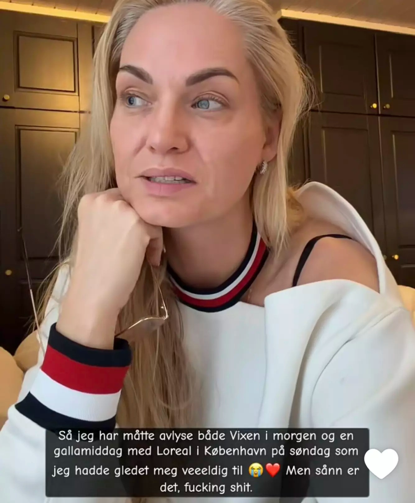 – Jeg måtte dessverre avlyse både Vixen i morgen og en gallamiddag med Loreal i København på søndag, som jeg hadde gledet meg veldig til. Men sånn er det, forklarer Haugen åpenhjertig i en ny video.