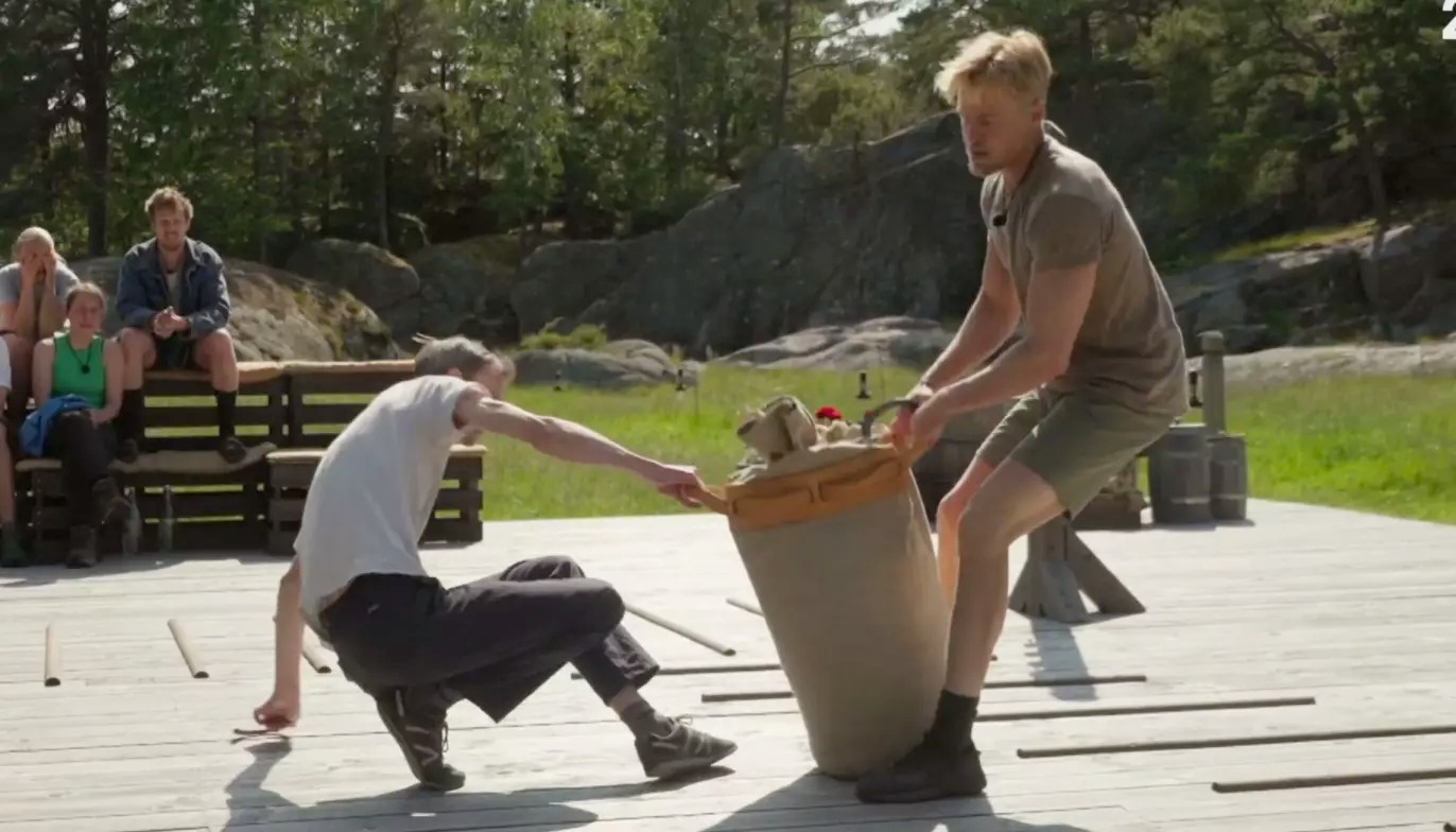 Fiolinist Stinius Maurstad møtte treningsprofil Sondre Sundby i grenen «sekken» – en konkurranse som i praksis handler om utholdenhet og rå muskelkraft. Dermed var utgangspunktet alt annet enn jevnt.