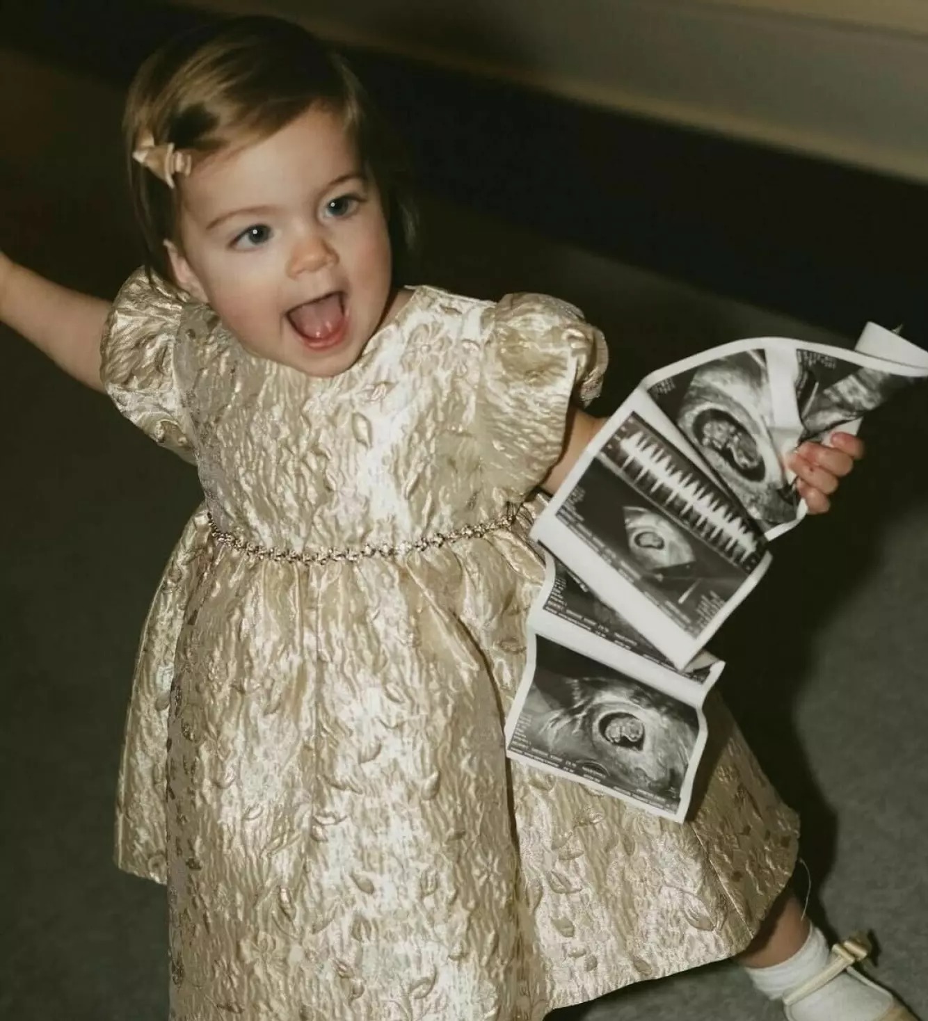 Deres første barn dukker også opp i bildeserien, stolt med ultralydbildene i hendene. Et øyeblikk som både er personlig og nøye kuratert – slik følgerne har blitt vant til.
