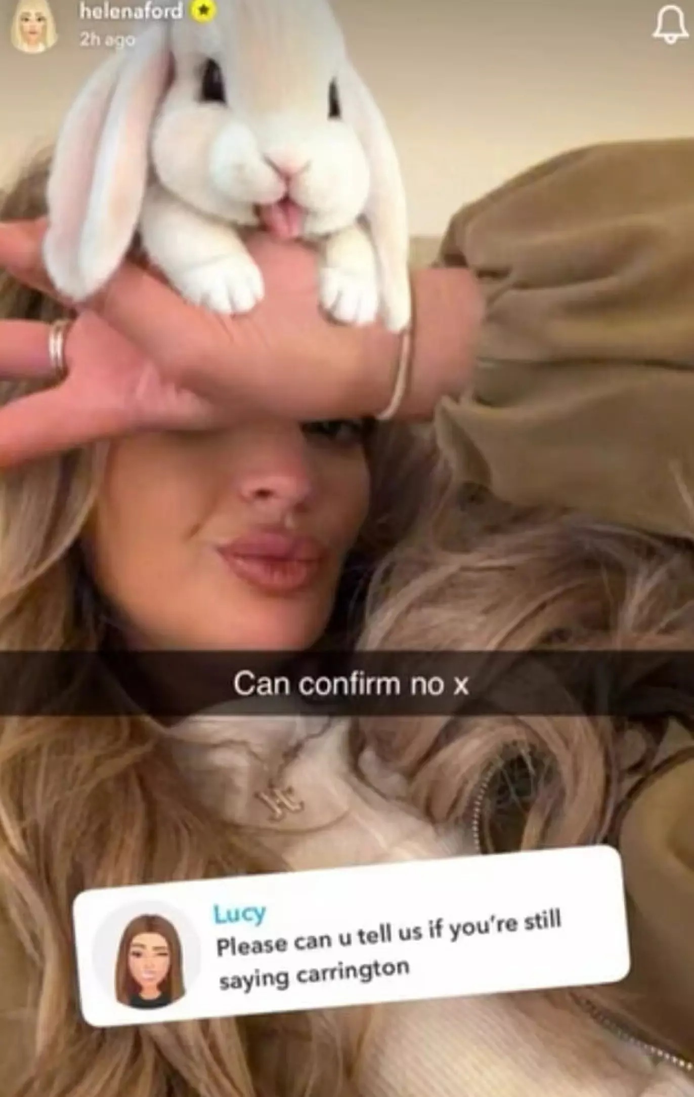 Det var Helena selv som satte punktum for spekulasjonene. I en spørsmålsrunde på Snapchat fikk hun det direkte spørsmålet mange hadde ventet på: er hun fortsatt sammen med Carrington?