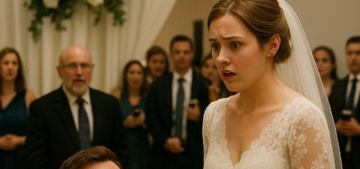 Salen var dekorert med hvite blomster, og det spilte myk, høytidelig musikk. Alle reiste seg da brudgommen kom inn – selvsikker, rolig, med det blikket i øynene som