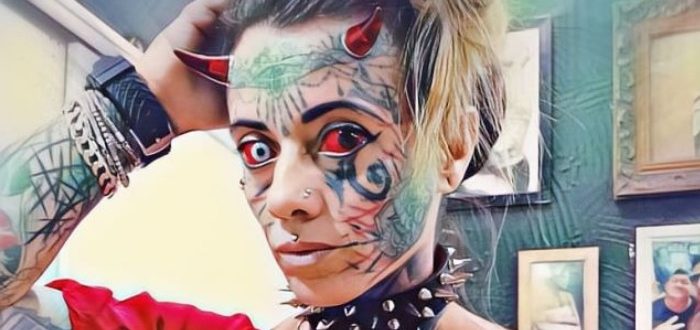Hun brukte nesten tjue år på å realisere drømmen sin og forvandle seg til en ekte «demonkvinne». 😈🔥 Øynene hennes er nå skarlagenrøde, tungen hennes er gaffelformet, og