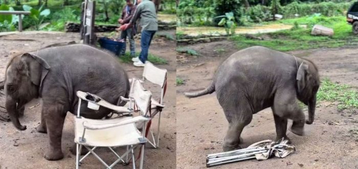 «En elefantunge på en stol?!» 🐘😂 Internett kan ikke slutte å le av denne klønete lille giganten som prøver å sitte som et menneske. Er det for morsomt